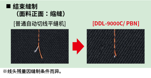 缝制结束时面料上的线头残量仅 3mm