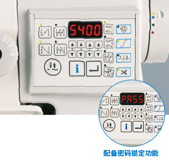 电子控制箱内置了属于高性能CP-180系列的控制面板。通过该面板,可以调节从缝制速度到生产支持功能的各种缝制数据。