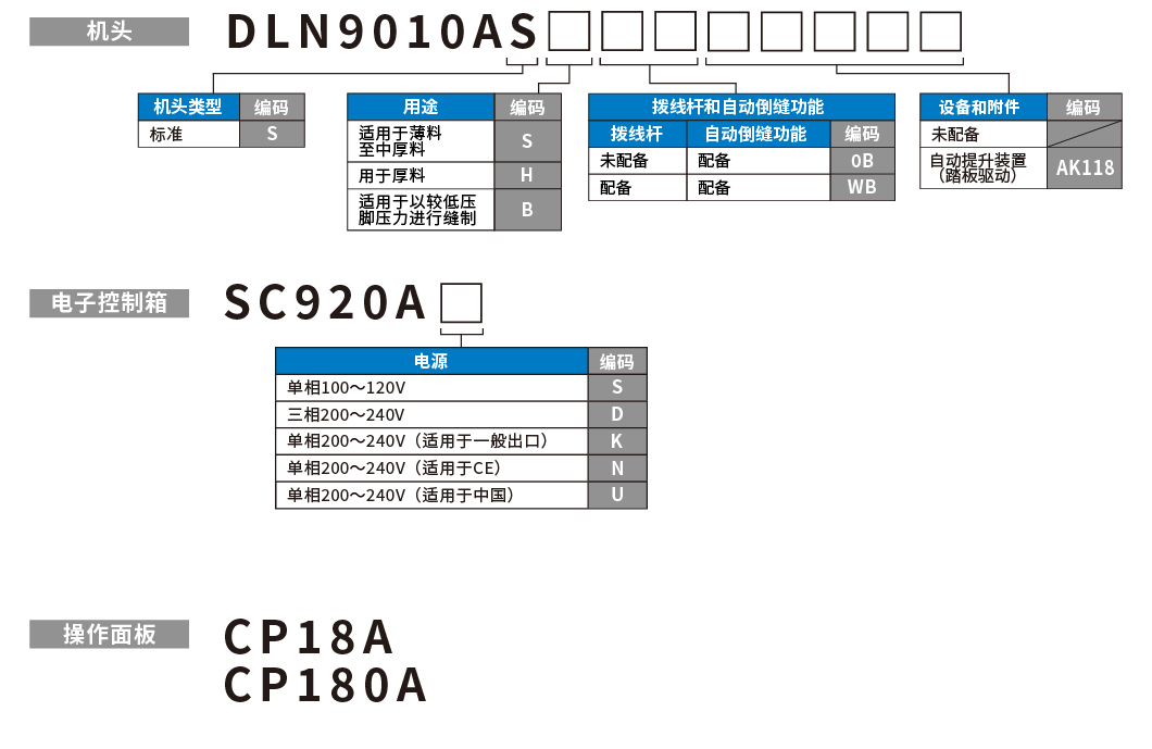 两种不同的操作面板CP-18A和CP-180A适用于DLN-9010A。两个操作面板均具有生产支持功能。