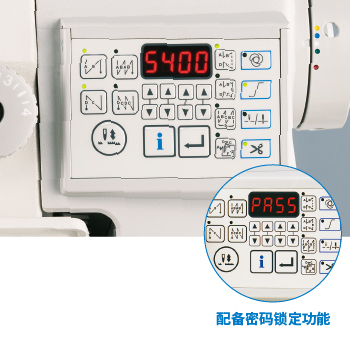 电子控制箱内置了属于高性能CP-180系列的控制面板。通过该面板,可以调节从缝制速度到生产支持功能的各种缝制数据。