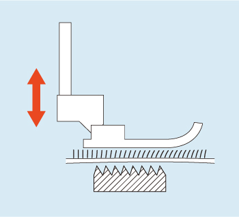 缝制薄料或类似面料时,必须避免起皱。通过简单的调节和更换针位,就能切换为下送布方式。与针送布相比,下送布可有效防止皱褶,实现低张力缝制。