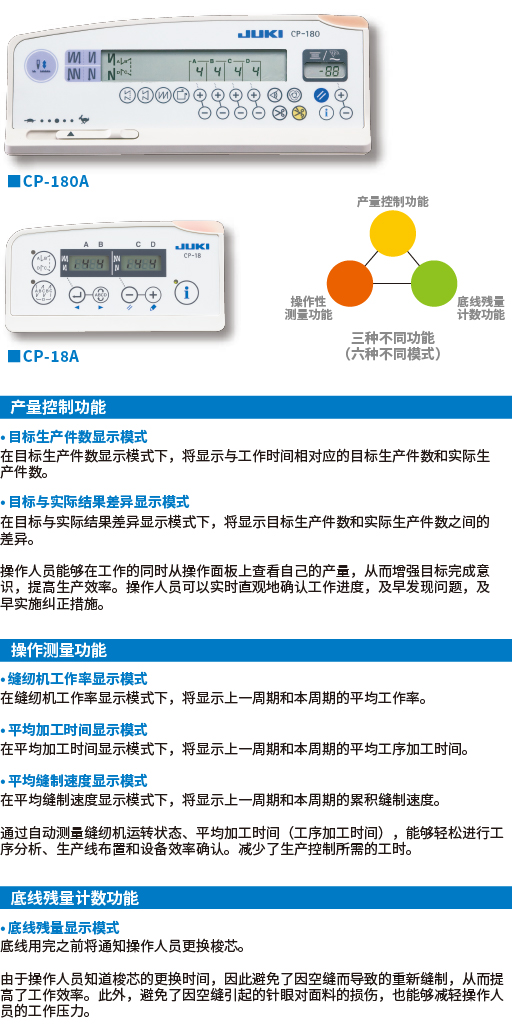 生产支持功能由三种不同的功能(六种不同的模式)组成,即产量控制功能、操作测量功能和底线残量计数功能。各功能的生产支持作用各不相同。可以根据需要选择适当的功能(模式)。