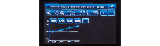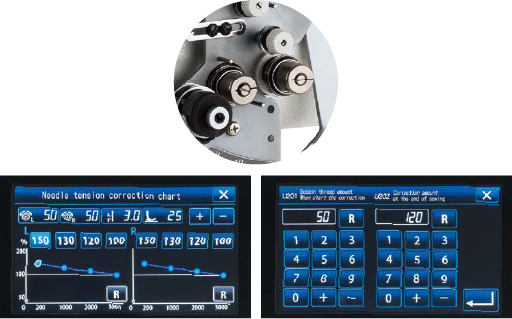 - 根据底线余量,自动修正面线张力。因此,即使底线余量减少,也能获得稳定的缝制质量。