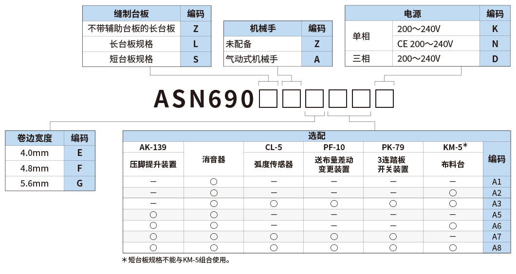 长台板和短台板两种规格,便于移动面料,有助于进行高速包缝作业。