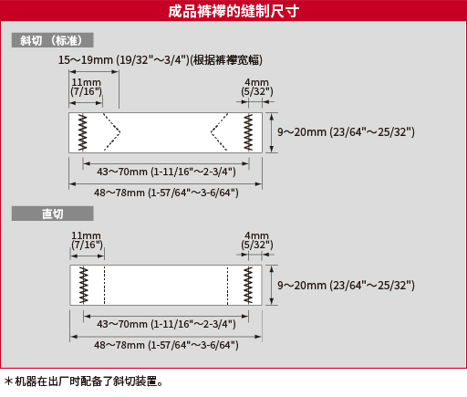 | 裤襻宽度 | 9~20mm (23/64"~25/32") |
