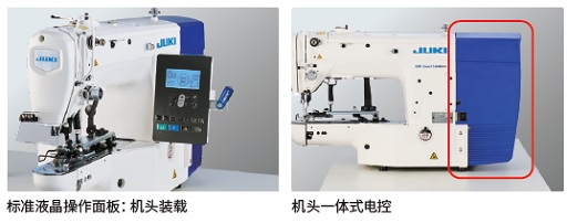采用JUKI原创设计的机头一体式电控。标准花型存储50个花型、最多可存储999个花型(500,000针)。