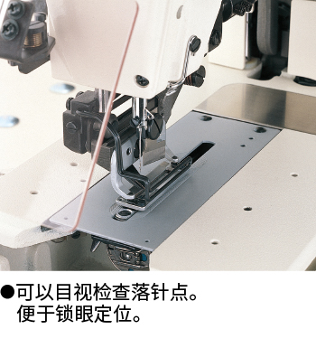 新型面线切线机构不会干扰锁眼定位。面部形状的设计使落针位置周围有充足的间隙。因而进一步提升了操作的简便性。