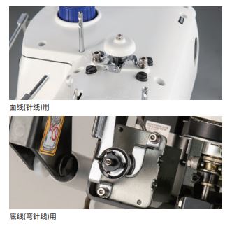 面线·弯针线张力电子控制根据不同的缝制条件, 面线·弯针线张力可在操作面板上设定数值