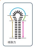 原来的线张力机构无法实现的同一缝制条 件简单再现,对应面料变化迅速,换款计划时间和调整时间大幅缩短。另外,实现安定的高品质缝制。 而且另增加的改良,缝制中压力变动小, 缝制张力稳定。缝纫机间线张力变小,使用相同的缝制数据可得到同一缝制张力。可以分别设定圆头部和平头部等各个部位的线张力
