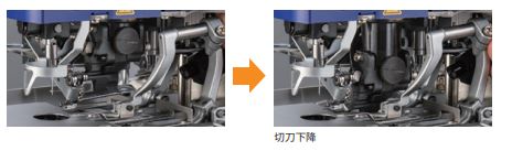 新型面料切刀压力自动控制。一次设定 完成后,即使切刀的高度发生变化,也可以控制相同的压力,因此无需更换或重新调整切布切刀的压力。 这大大减少了更换时间。 (也可以为每个缝纫花型设置不同的压力。 ) 上下线的电子夹线器功能,对熟练操作 工不足的产业现状很有帮助。