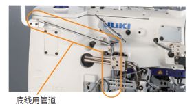 原来非常麻烦的圆头锁 眼缝纫机的穿线作业, 通过空气管把线吸入, 使穿线作业变得轻松。