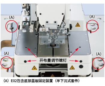 - 通过设置在机头外侧的螺钉,可轻松调整开布量。