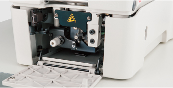 采用门闩式底部盖板。无需抬起机头就能进行日常维护(穿线、弯针线调整、清扫等)。