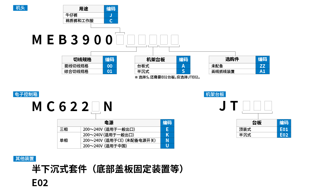 根据客户需求,MEB系列增添了带有面线切线装置(面线切线规格)的机型。