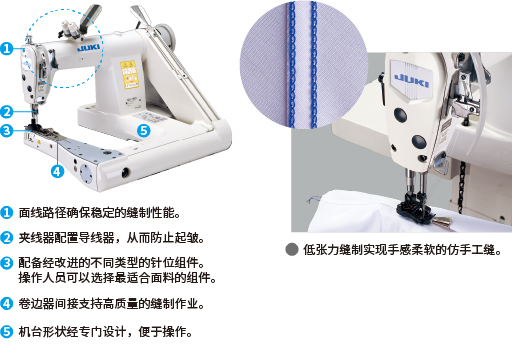 低张力缝制能力和改进的缝制机构,能有效防止起皱