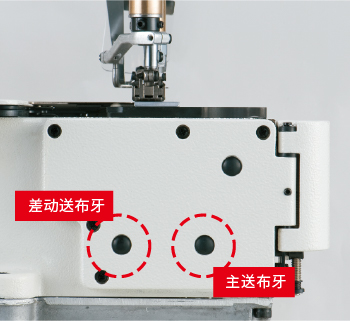 配置了新的送布机构、差动送布微调机构等许多与缝制相关的机构,从而提高了缝制质量。此外,还标配了防弯针线缠绕机构,提升了机器的维护性。