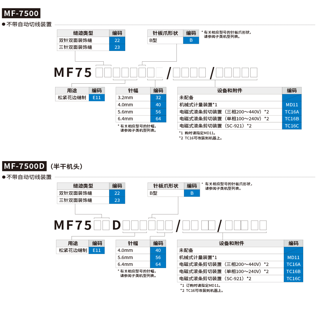 | 产品型号 | MF-7500系列 | MF-7500D系列 | ||