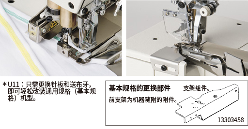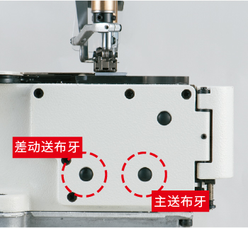 配置了新的送布机构、差动送布微调机构等许多与缝制相关的机构,从而提高了缝制质量。此外,还标配了防弯针线缠绕机构,提升了机器的维护性。