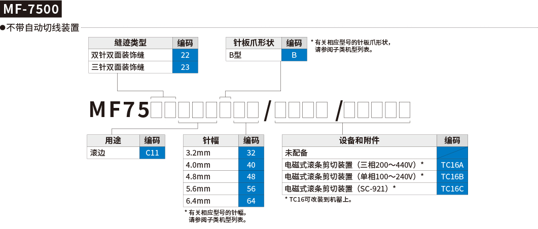 MF-7500系列是新开发的装饰缝缝纫机,配备了多种用于提高缝制质量的机构。