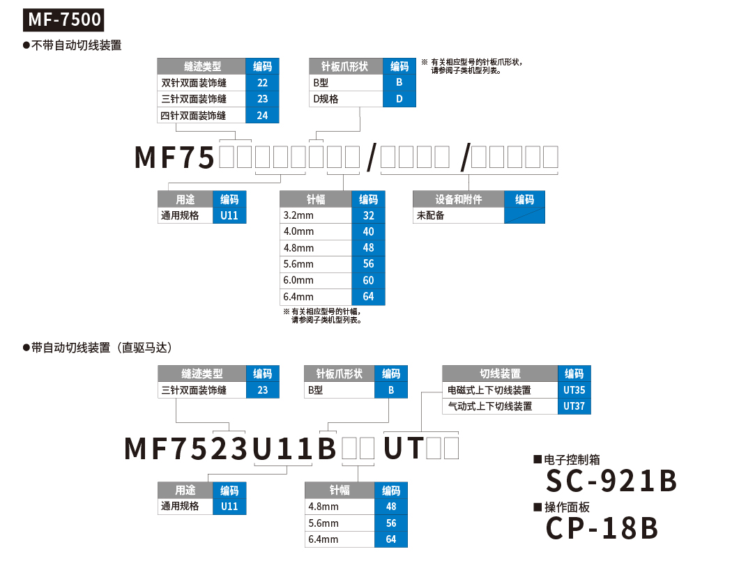 MF-7500系列是新开发的装饰缝缝纫机,配备了多种用于提高缝制质量的机构。