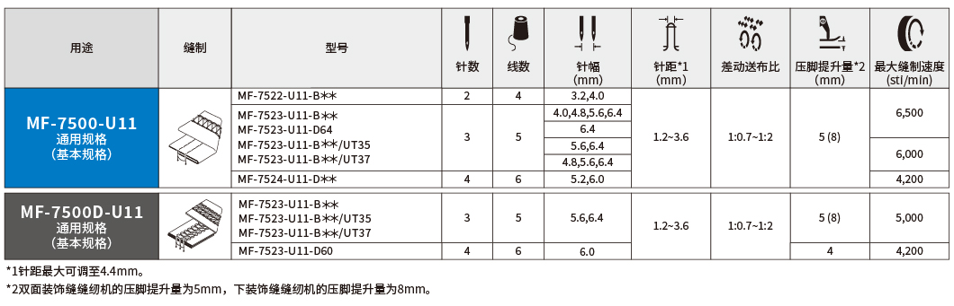 | 压脚提升量 | 5mm(双面装饰缝时), 8mm(下装饰缝时) |