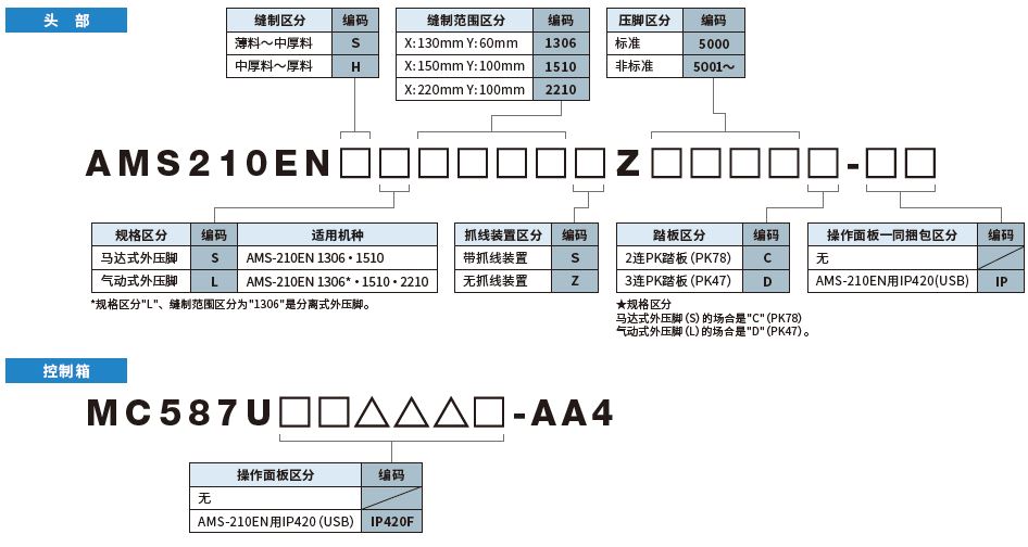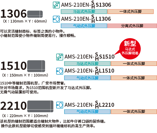 AMS-210EN系列有三种不同缝制范围的机型