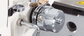 采用市场上深受好评的控制面线张力的电子夹线器。通过电子夹线器,可以精准确定缝制中面线张力的变化。因此,根据面料厚度设定的面线张力,以及因缝制方向变化而需补正的面线张力,均可以通过操作面板进行每一针的输入。由于面线张力可复制,因而支持更广泛的缝制条件,缩短了切换工序时更改设定所需的时间。