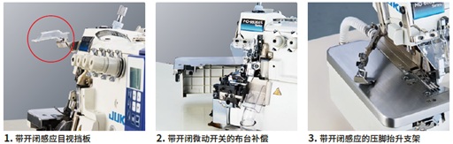 全自动款中的传感器可感应是否有面料,防止侧切装置或空环切线的错误操作。