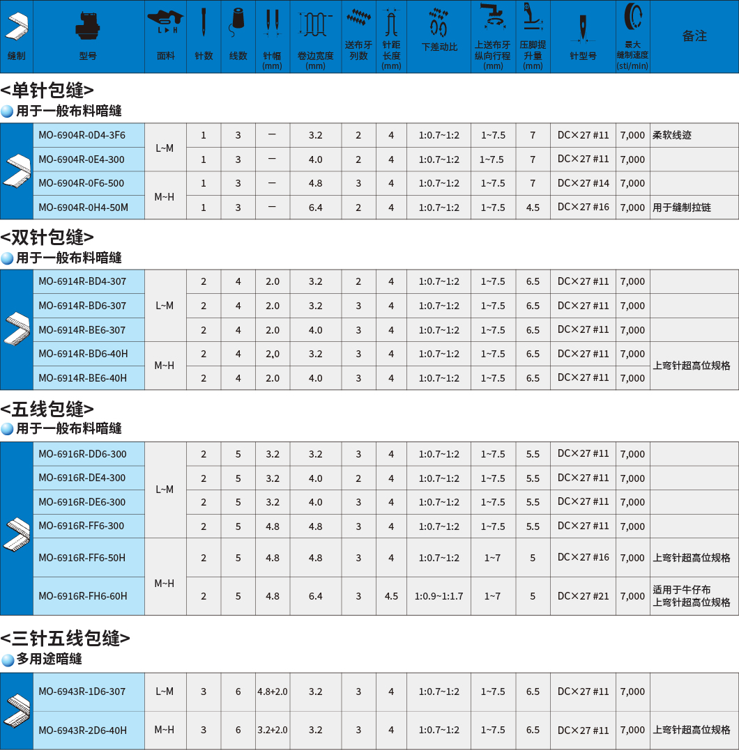 MO-6900R系列采用最新开发的送布机构,可单独进行上下送布。