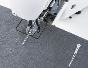 将缝纫空间扩大至50mm(纵)×60mm(横)的特别款式。可以进行拳击手短裤的橡皮筋合缝,袖口合缝,粘扣, 图案缝纫等的缝制。