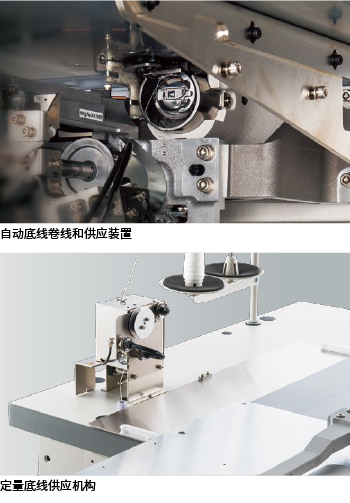 此外,缝制只需2个梭壳。因此,无需控制底线张力和更换梭芯的繁琐工作,从而提高了生产效率。