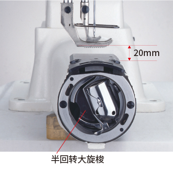 配备半回转大旋梭。半回转大旋梭能降低底线更换频率,最适合以低支线缝制极厚料。