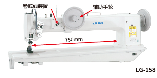 - 机臂下方750mm的宽广空间,机臂中间设置了手轮,是缝制帐篷和床单等厚料的理想机型。大型面料可以铺置在机台上进行缝制。