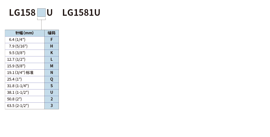 | 针幅 | 标准19.1mm(3/4") | - | ||||