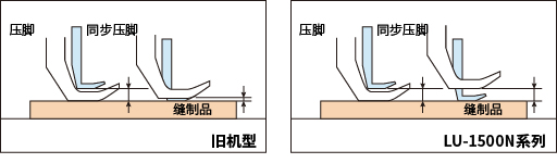 同步压脚和压脚的交替上下移动量可轻松设定和更改(LU-1510N-7,LU-1511N-7)