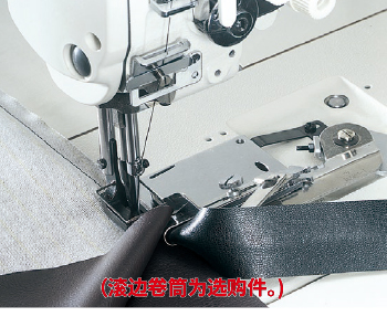 (用于极厚料)- 最大针距长度为10mm。完全箱式送布能准确传送极厚料,同时防止缝线收缩。