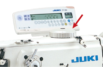 - 通过机头顶面的大拨盘,可以简便地更改同步压脚和压脚的上下行程(交替上下移动量)。