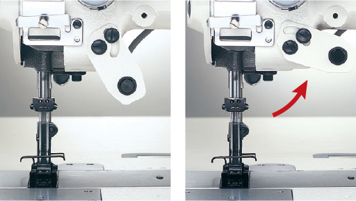 - 采用下送布调节机构,可调节下送布量,同时保持针送量固定不变。无需更改针距即可防止送布不均匀。