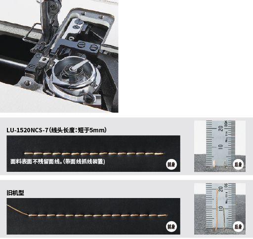 - 采用最新设计的直驱切线机构,缩短了切线后面料上的线头长度。