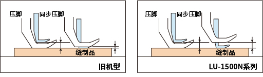 同步压脚和压脚的交替上下移动量可轻松设定和更改(LU-1560N-7,LU-1561N-7)