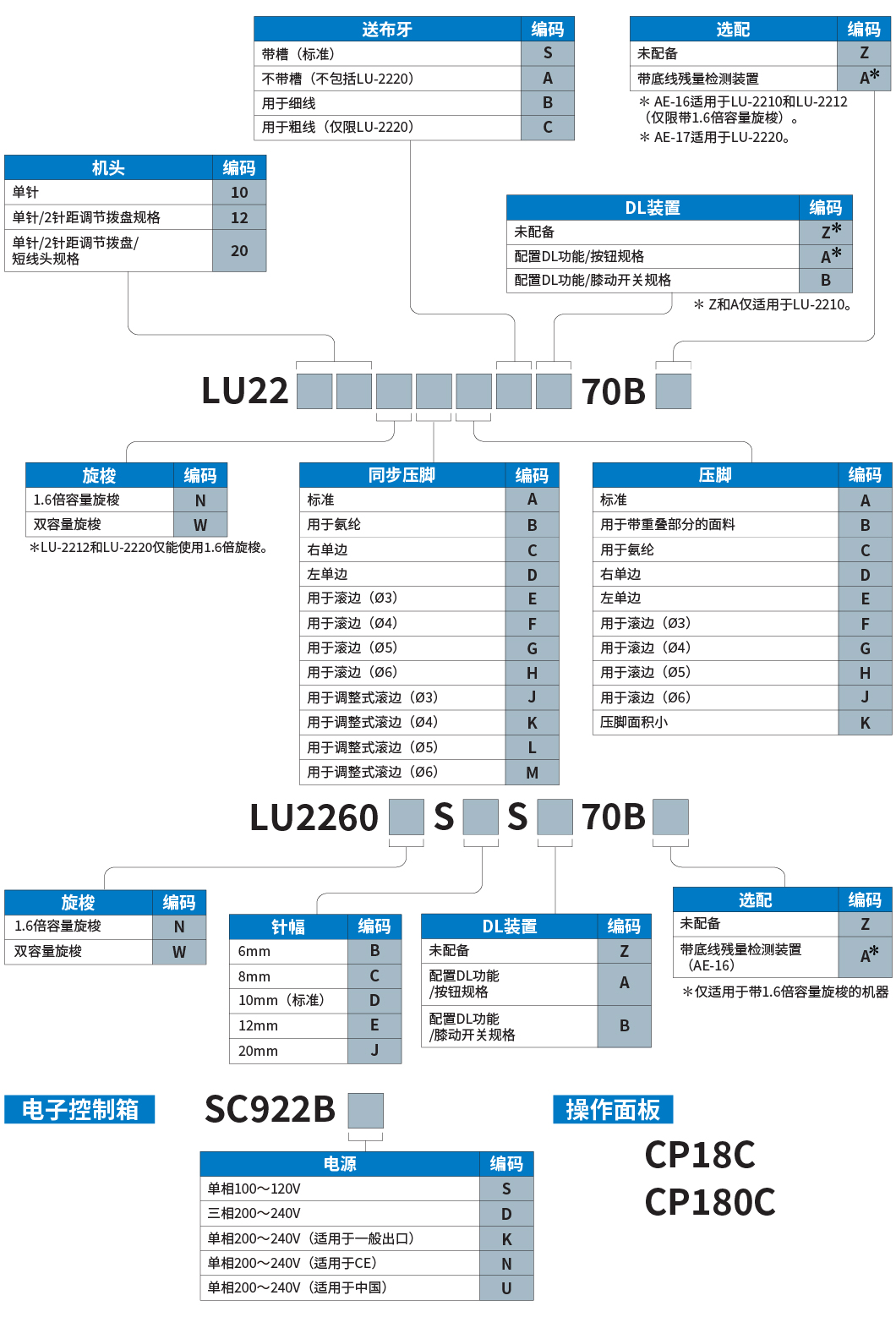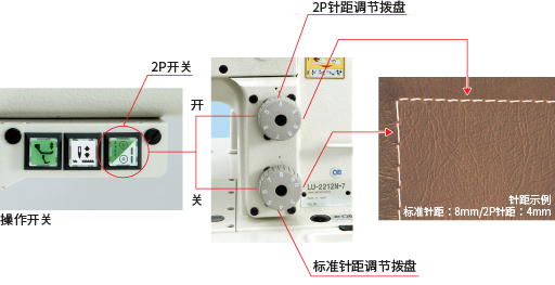 (1.6倍容量旋梭/2针距调节拨盘规格)两种不同的针距长度可根据用途进行选择。