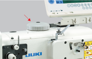 - 通过机头顶面的大拨盘,可以简便地更改同步压脚和压脚的上下行程(交替上下移动量)。