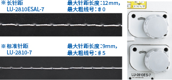 LU-2818ESAL-7 <2.7倍容量旋梭>)长针距缝制适合家具等的装饰缝。针距调节拨盘上的最大针距长度为12mm。