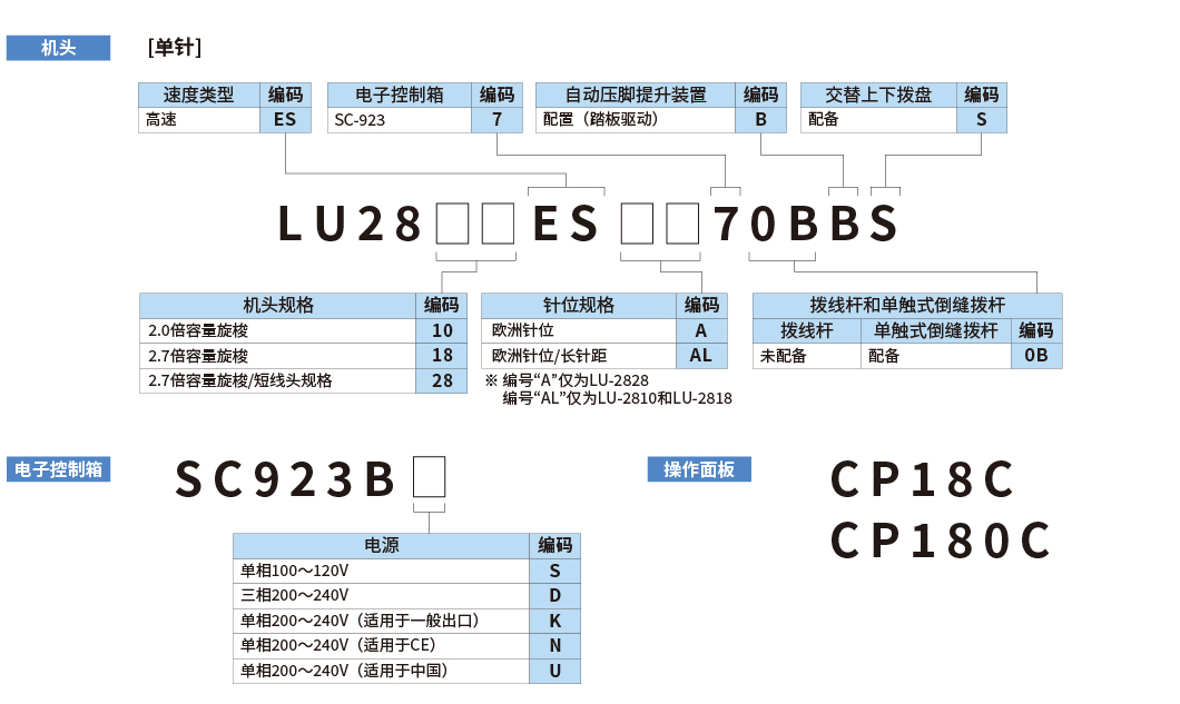 | 类型 | 高速单针自动切线装置 (2.0倍容量旋梭/长针距规格) |