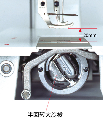 配备半回转大旋梭。半回转大旋梭能降低底线更换频率,最适合以低支线缝制极厚料。