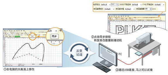 → 马上试缝●控制缝制品质 对缝制数据,可设置送料动作、中压脚动作、数字动作。
