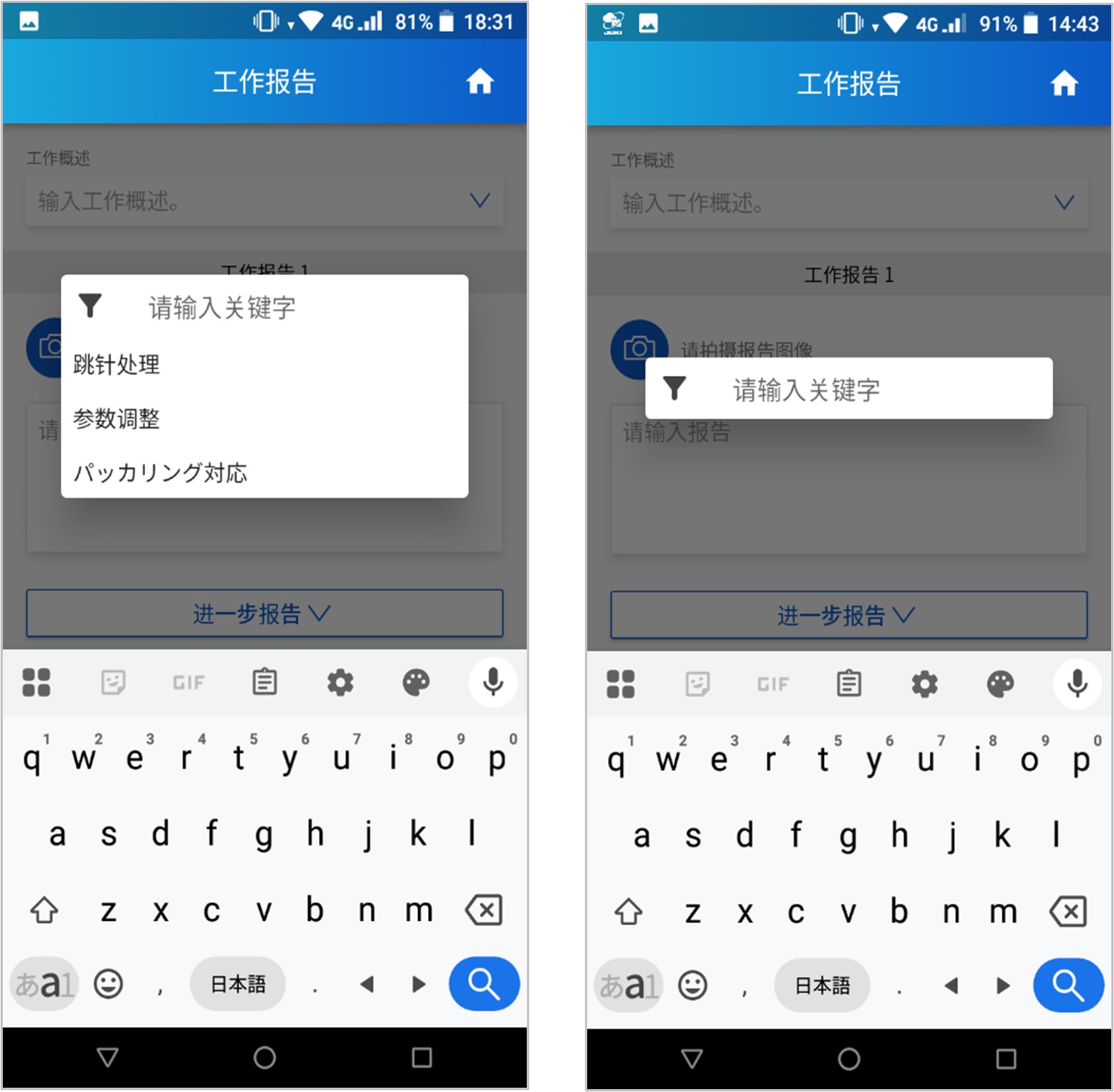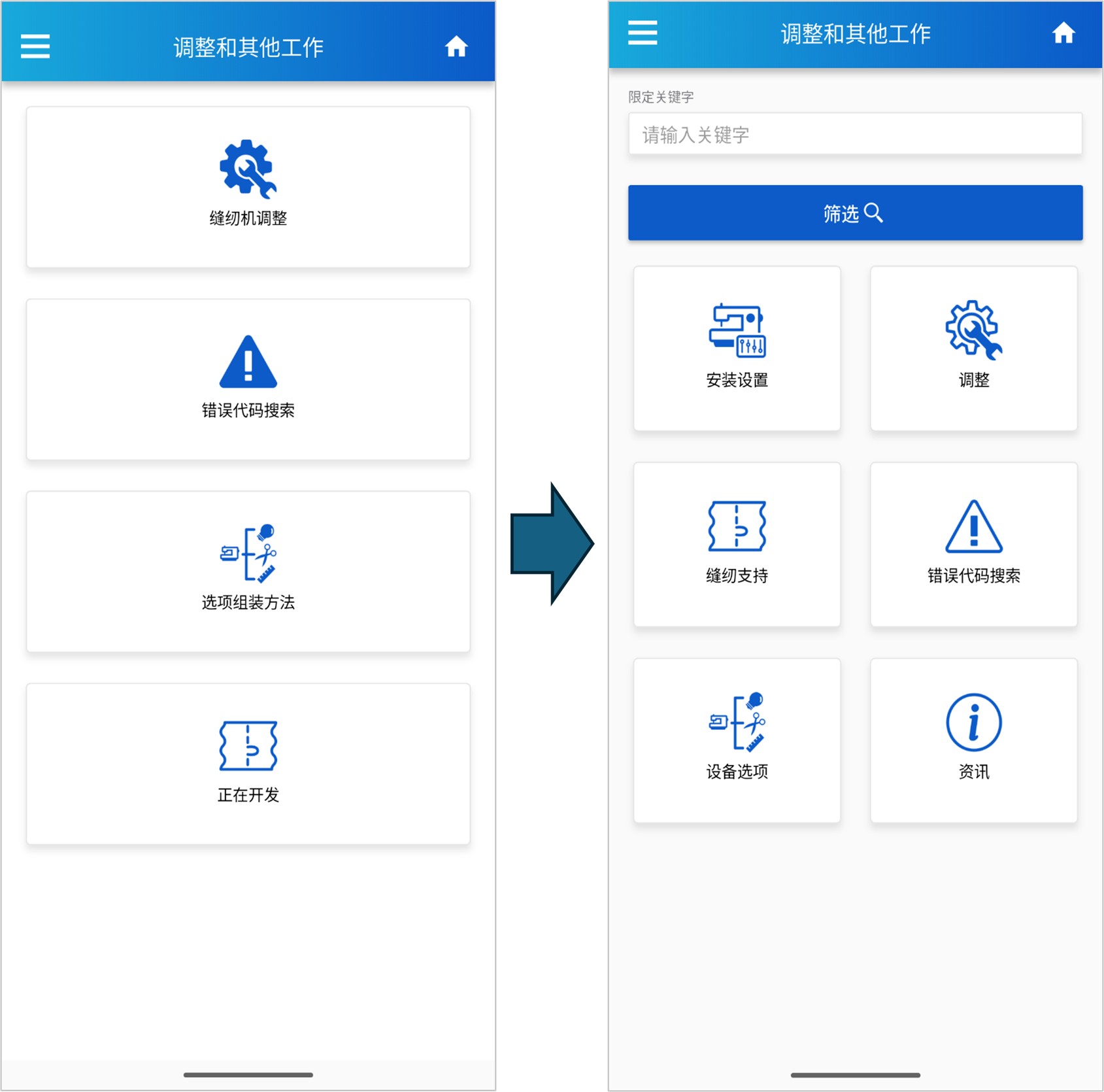 将手机应用程序的“调整和其他工作”页面的作业项目进行了细化,并在整个“调整和其他工作”项目中实现关键词搜索的功能。