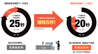 通过预设机构可以做到在锁眼缝制的过程中对下一个缝制布料的设置(重叠作业),从而有效利用了以前在锁眼缝制时的等待时间,并且把实现高效率的生产变得可能