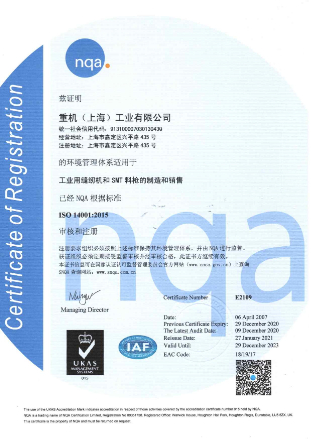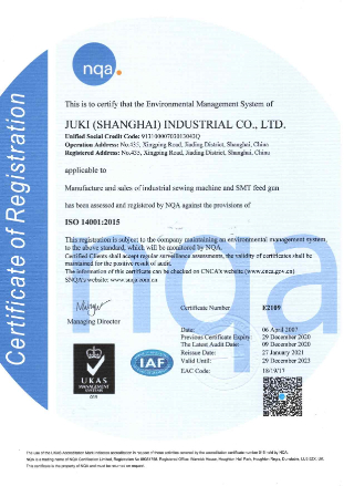 重机(上海)工业有限公司,作为生产JUKI工业用缝纫机的工厂于2000年10月成立。
