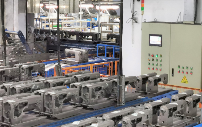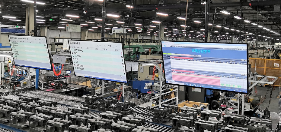 将自动搬运改善成为“分层自动搬运”,使其在工序间巡回。灵活运用可以对加工、涂装、组装、完成和每个工序的产量、库存数量进行一目了然确认的系统,努力实现早期改善。